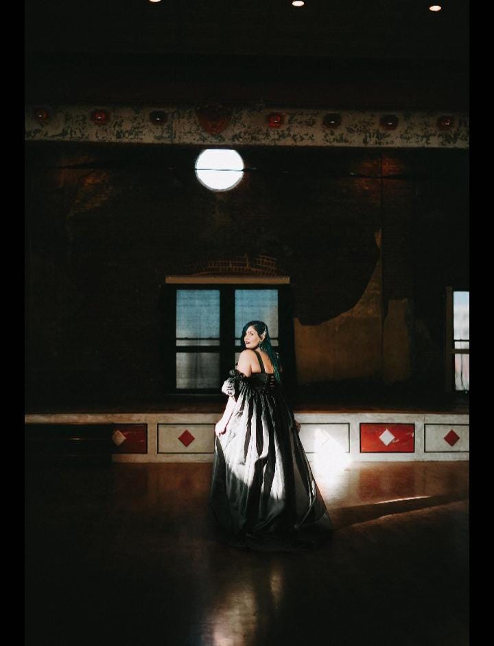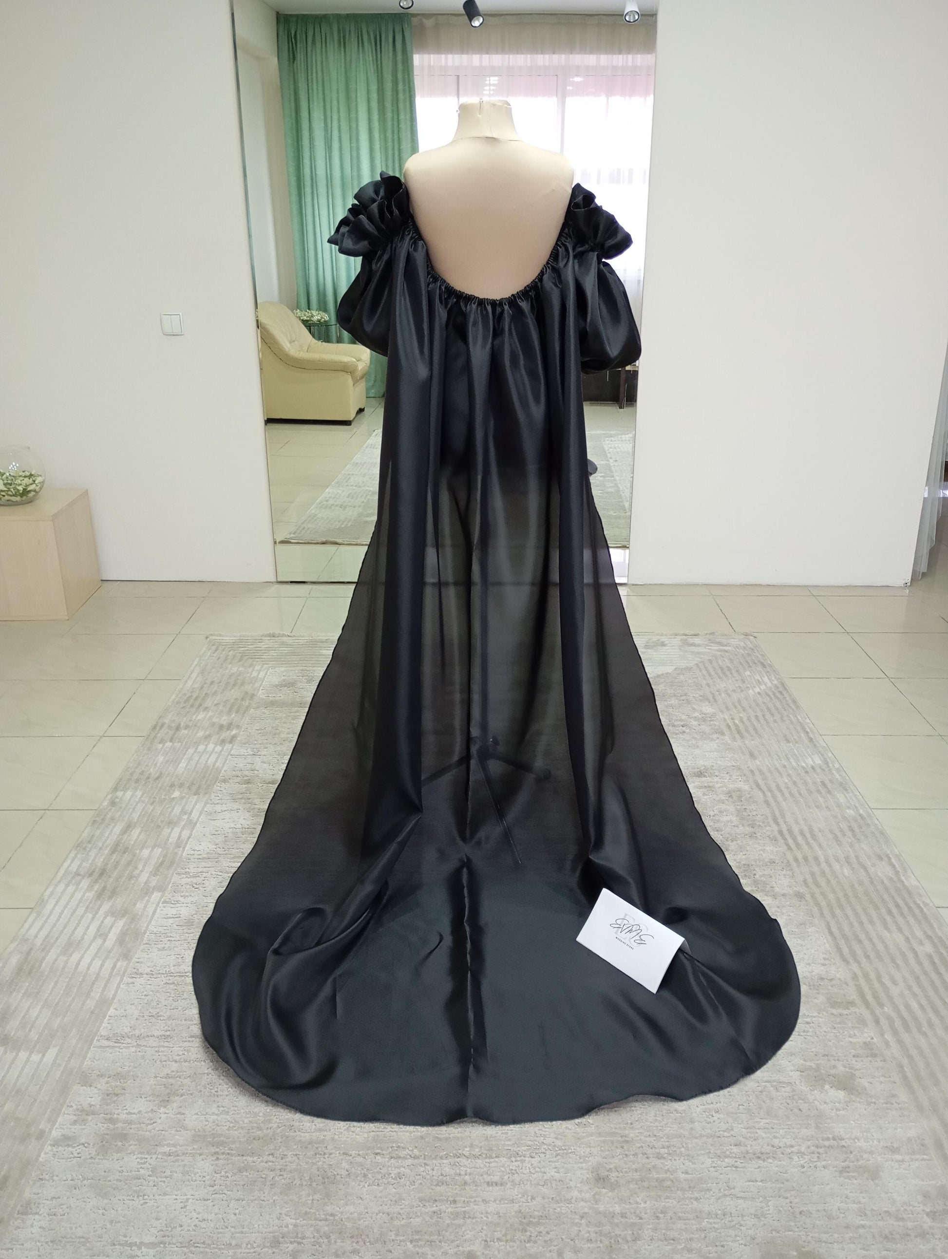 A romantic black organza cape will decorate your prom dress. Organza bicep veil ideal for minimalist style. Also, an organza cape with a long train will make your photo shoot unforgettable.