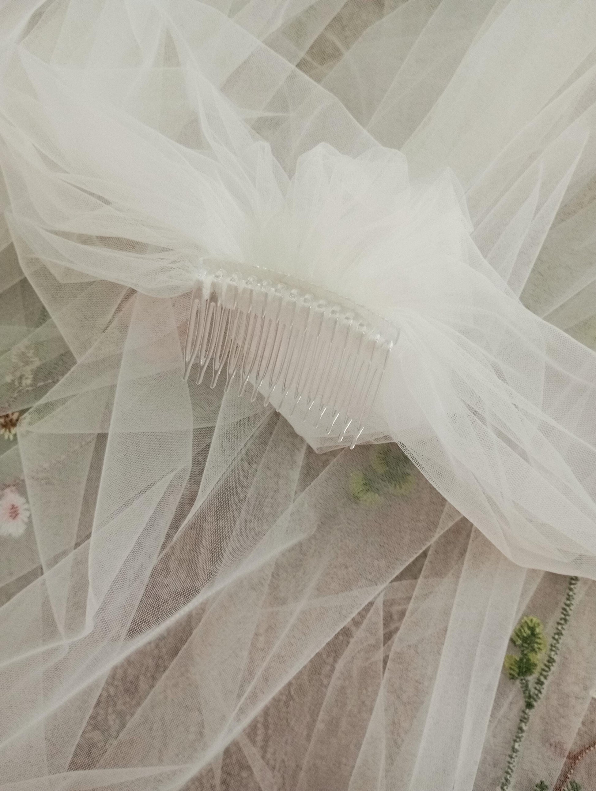 Length of the veil: 3 m (118") Width of the veil: 2,5 m (108") Materials: tulle,lace.