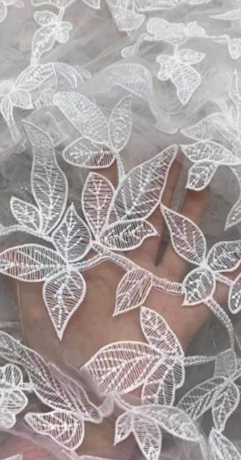 One layer of tulle is decorated waist and bottom with lace . The back length of this train from the waistline is 2.00 meters (80 inches). This train measures 1.2 meters (47 inches) from the side waistline. The train is made of soft tulle, which is attached to hooks.